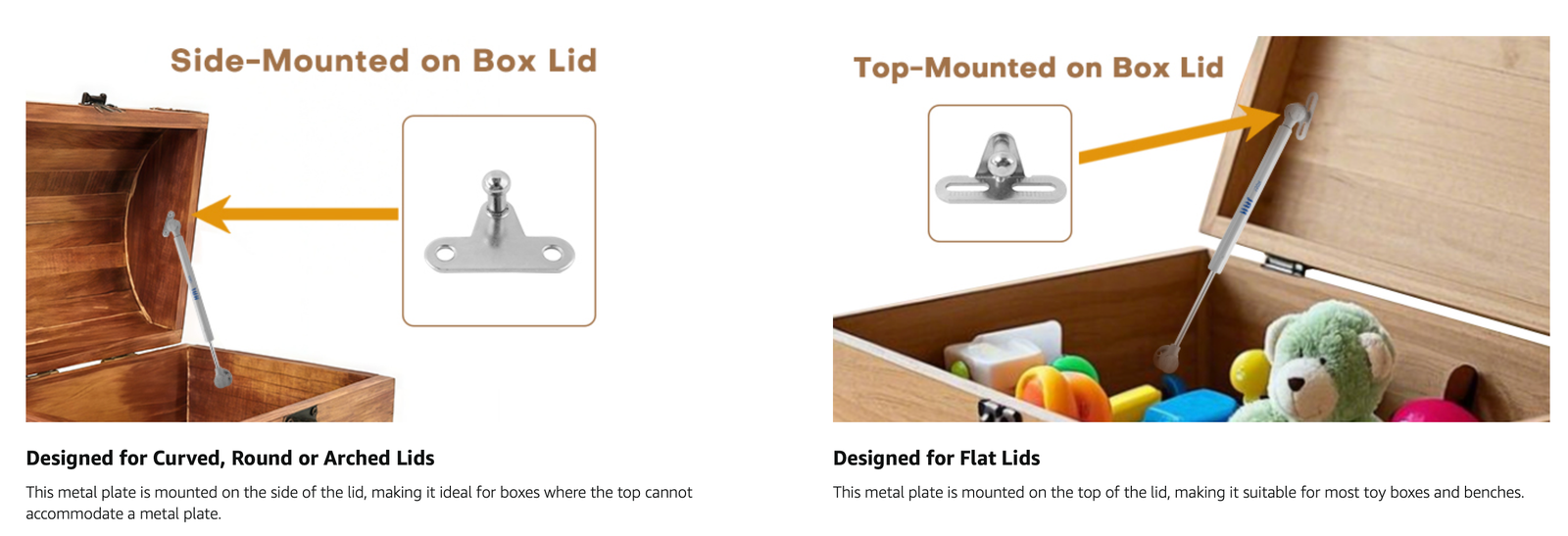 2 Pack Soft Close Toy Box Hinges for Heavy Curved, Round, Arched and Flat Lids – HBL’ 150N Gas Strut Spring Safety Hinges to Slow Down and Slow Close, Also Works for Flat Lids.