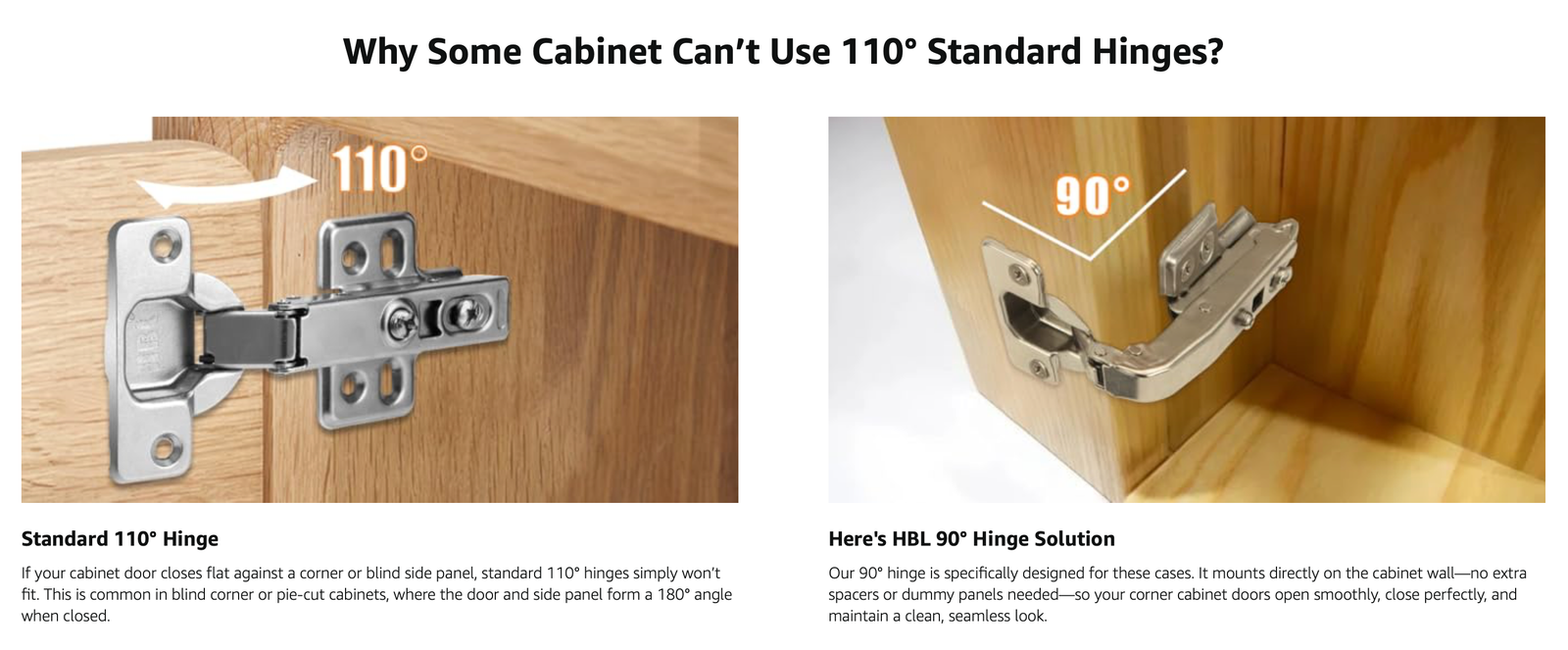 HBL’ 2 Pack 90° Blind Corner Cabinet Hinge, Pie Cut Corner Kitchen Door Hinge, Soft Close European Concealed Hinge for Frameless Blind Corner Cabinets